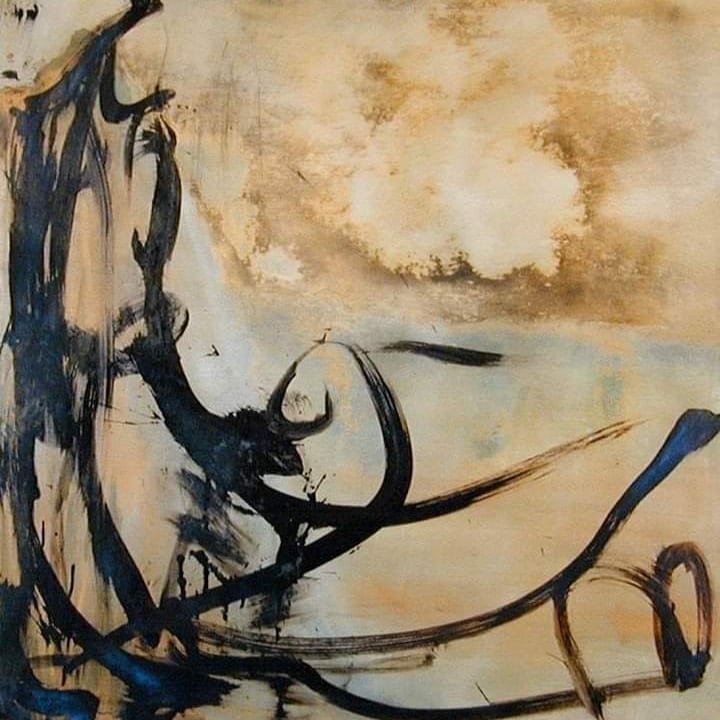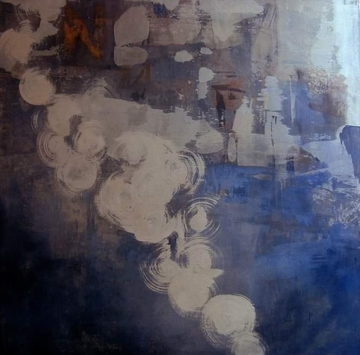 mica, Indian ink, acrylics, polyurethane on canvas