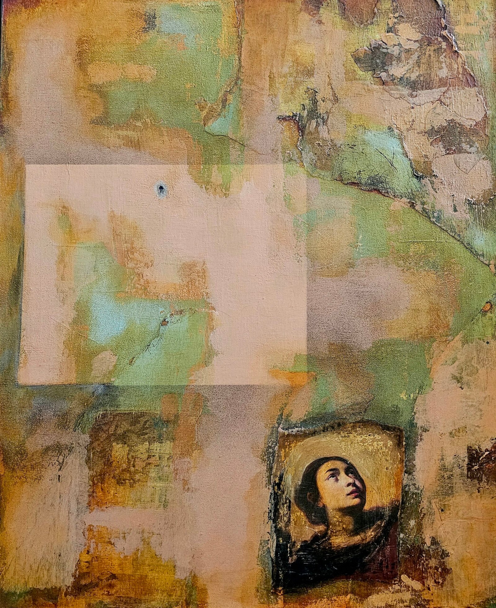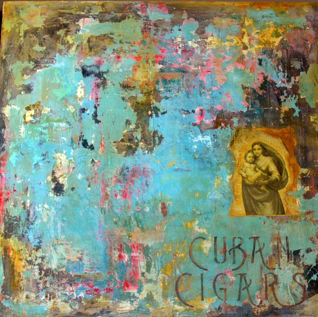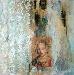 mica, acrylics, ink, polyurethane on canvas